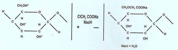 CMC is produced by the reaction of cellulose with sodium hydroxide and monochloro acetic acid.